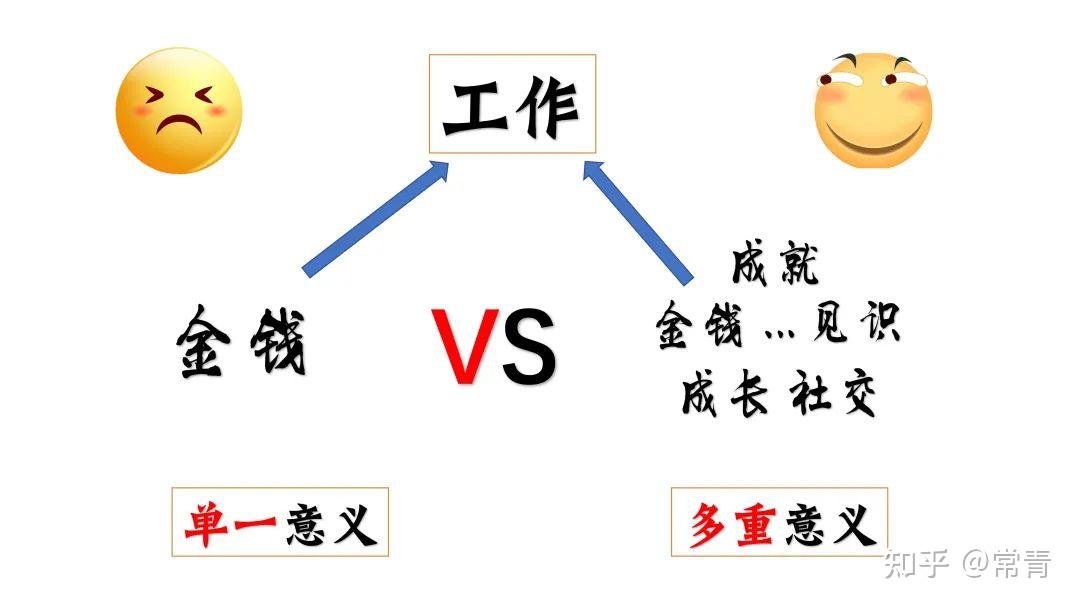 你看,视角一转换,你就重新定义了这份工作,重新给这份工作赋予了新的意义,除了能收获到【金钱】的激励外,你还多了发自内心的【成长价值】+【情绪价值】等等这一系列的多重意义加持。