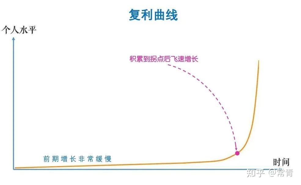 但是,这就好比我们『复利曲线』拐点前的漫长等待一样,因为有了时间的加持,往往越是在这个阶段,越是拐点出现进入内化期的时刻,用佛家的话说:这一步进则净土,退则凡尘,当我们突破了拐点,我们就会进入真正意义的“内化期”。