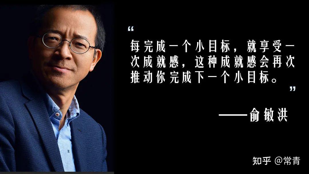 这一点,正如新东方的创始人俞敏洪说的:任何一个高目标都可以分成许多小目标来完成,即使不能一下子达到最高目标,只要一步一步向前走,最终都能实现,每完成一个小目标,就享受一次成就感,这种成就感会再次推动你完成下一个小目标。