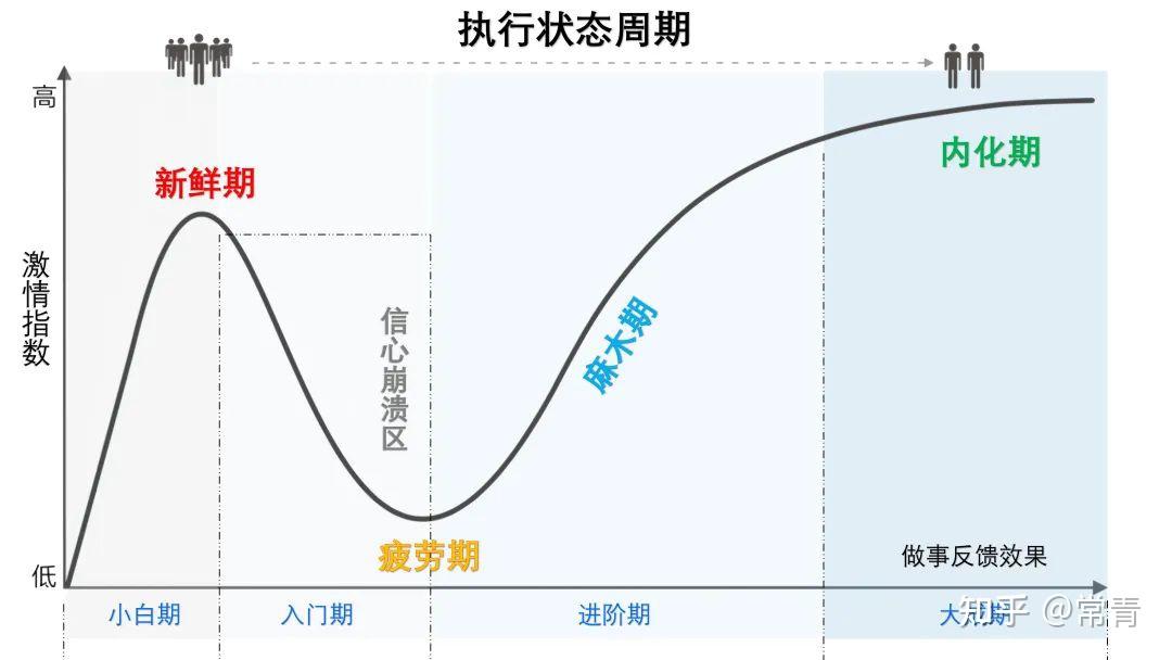 在我们处于【新鲜期】的时候:要学会调整自己的预期,避免因为过于低估任务的复杂程度,而导致落差较大,影响执行心态。