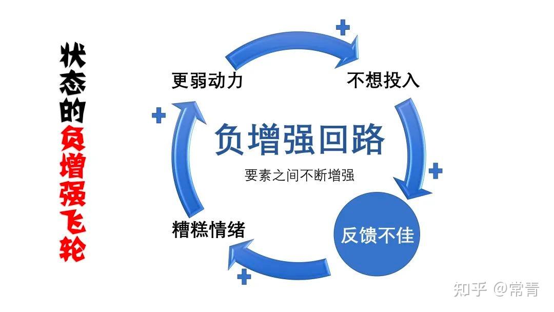 然后这种糟糕的情绪,又会给我们带来更差的执行动力,于是乎更差的执行又会让这个积极的反馈变得更加遥不可及,最后陷入死死的恶性循环中,一旦这种情绪到达某个节点,现实和我们的预期反馈差距过大的时候,一百个人中,八十个会在这里放弃。